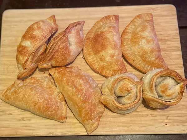 Fresh baked spinach empanadas, added artichokes to these cause they're delish!!!