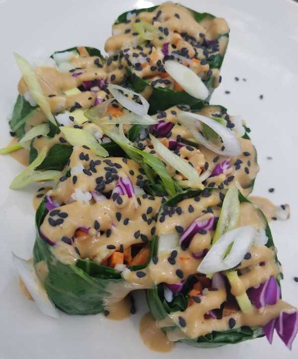 Thinking about putting these on the menu as a special ๐ค๐ค Sesame peanut drizzled veggie rolls ๐คค๐คค