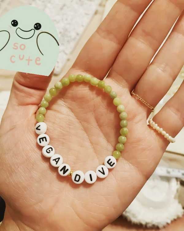 Thank you to Ingy, my sister from another mister, for creating this gorgeous little bracelet repping The Vegan Dive! Sheโs owns a local business @pretty__charmed that sells custom made jewelry ๐ #supportlocalbusiness